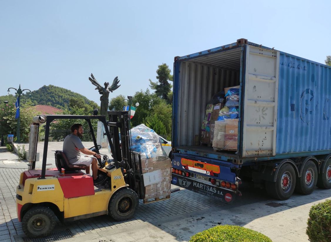 Συγκεκριμένα, την Τετάρτη, 25 Αυγούστου 2021 παραδόθηκε, από κ. Γεωργία Πηλιχού, ένα κοντέινερ με 22 παλέτες ειδών πρώτης ανάγκης στο Κοινωνικό Παντοπωλείο του Δήμου Αρχαίας Ολυμπίας παρουσία της Επιτροπής, που συστάθηκε ειδικά για τους πυρόπληκτους δημότες της ευρύτερης περιοχής.