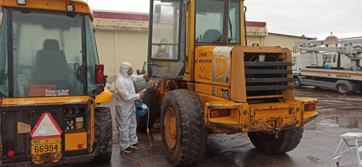 Αξιοποιώντας το συγκεκριμένο όχημα, οι υπάλληλοι του Γραφείου Κίνησης, προχώρησαν σε ενδελεχείς απολυμάνσεις όλων των οχημάτων του Δήμου, καθώς και των κοινοχρήστων χώρων υπηρεσίας.