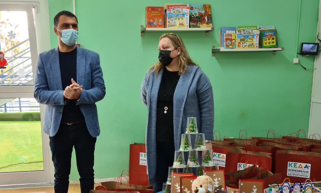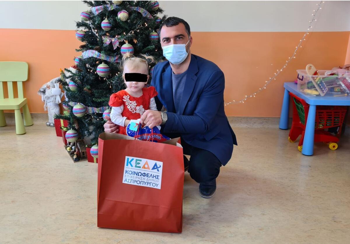 Ενόψει των γιορτινών ημερών και θέλοντας να προσφέρει απλόχερα συναισθήματα χαράς στα παιδιά που φιλοξενούνται στους Βρεφονηπιακούς Σταθμούς της πόλης, ο Πρόεδρος της Κοινωφελούς Επιχείρησης του Δήμου Ασπροπύργου, κ. Αναστάσιος Παπαδόπουλος, μοίρασε δώρα και ευχές στα βρέφη των δομών. Τα παιδιά γεμάτα ενθουσιασμό άρχισαν να παίζουν με τα παιχνίδια τους και το χαμόγελο που πλημμύρισε τα πρόσωπά τους αποτέλεσε την μεγαλύτερη ανταμοιβή.