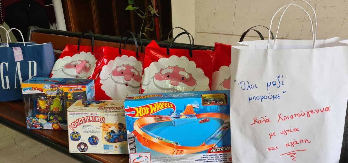 Η  Διεύθυνση Κοινωνικής Προστασίας και η Διεύθυνση Παιδείας σε συνεργασία με το «Όλοι Μαζί Μπορούμε», κατάφεραν να ευαισθητοποιήσουν όλους τους δημότες, μικρούς και μεγάλους να προσφέρουν στα παιδιά αυτά που πραγματικά έχουν ανάγκη. Όλα τα δώρα, που συγκεντρώθηκαν διανεμήθηκαν σε οικογένειες της πόλης, που αντιμετωπίζουν δυσκολίες.