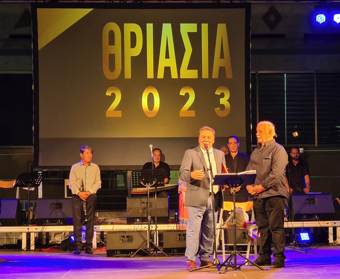 «Το ευχαριστώ είναι λίγο για τη μεγάλη τιμή που μου κάνατε και τη μεγάλη χαρά που μου δώσατε απόψε. Από την πρώτη στιγμή που εκλέχθηκα Δήμαρχος στον Ασπρόπυργο “αγκάλιασα” θεσμικά και προσωπικά την παραδοσιακή μουσική, την ιστορία της αλλά και τους ανθρώπους που την υπηρετούν, όπως την Ορχήστρα ΘΡΙΑ. Από το 2006 έως και σήμερα η ΘΡΙΑ τόσο τοπικά, ανά την Ελλάδα αλλά και σ’ ολόκληρο τον κόσμο έδωσε και δίνει το στίγμα του πολιτισμού και της παράδοσης. Γενιές και γενιές άκουσαν, έμαθαν και χόρεψαν με τους μελωδικούς ήχους, μιας εκλεκτής μουσικής ομάδας από καταξιωμένους καλλιτέχνες που έβαλαν στην καρδιά όλων τη δημοτική παραδοσιακή μουσική και κρατούν άσβεστα τα ήθη και τα έθιμα μας. Καλλιτέχνες όπως, ο Μητροπάνος, ο Λάλεζας, ο Κωνσταντίνου, η Φιλιππίδη και όλοι η μουσικοί τους θεωρώ μέλη της οικογένειάς μου και μαζί τους έχω περάσει αξέχαστες στιγμές γλεντιού κα χαράς.