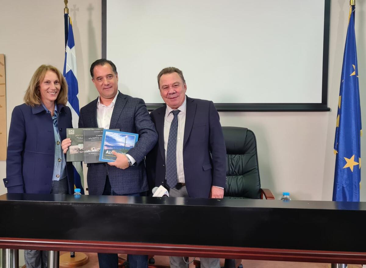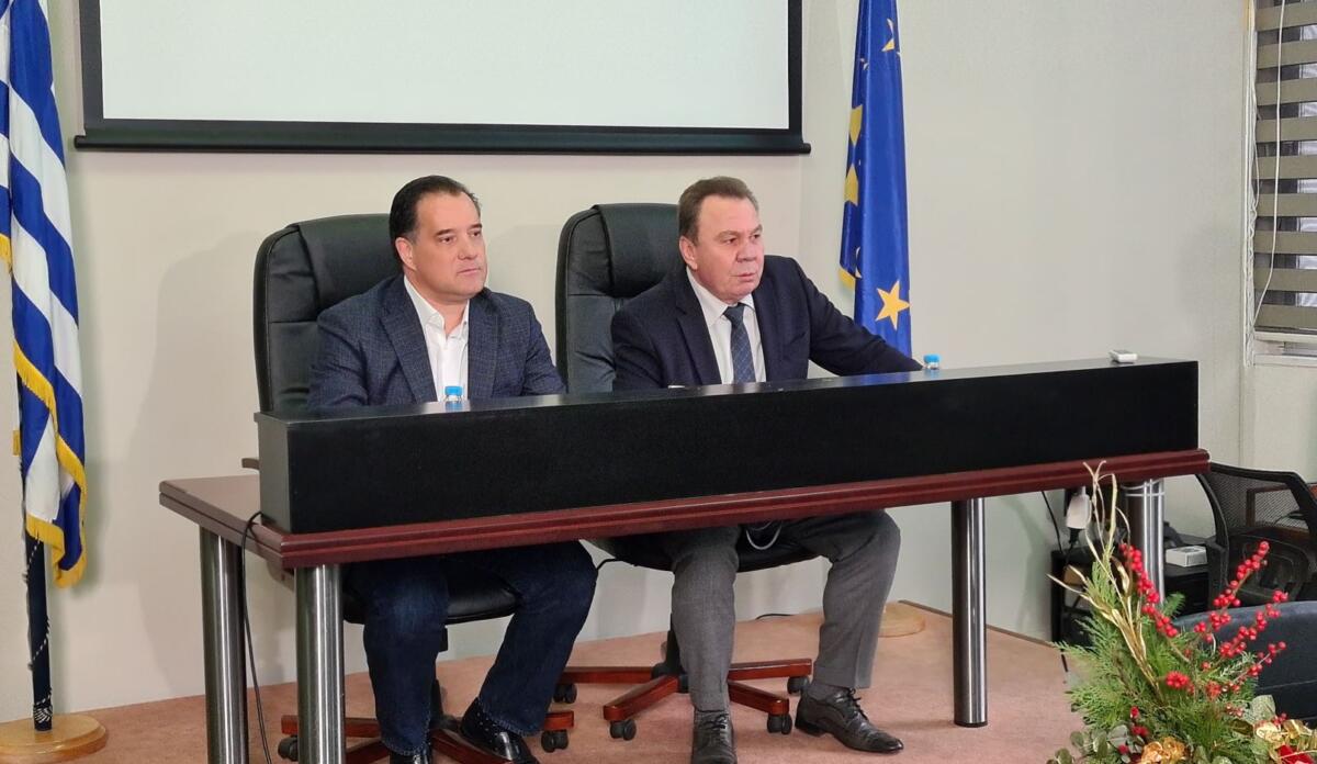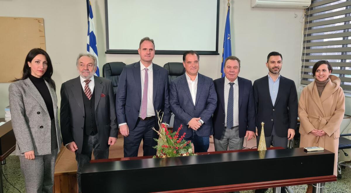 Τον Υπουργό Ανάπτυξης και Επενδύσεων, κ. Άδωνι Γεωργιάδη υποδέχθηκε σήμερα, Τρίτη, 20 Δεκεμβρίου στο Δημαρχιακό Μέγαρο Ασπροπύργου ο Δήμαρχος της πόλης, κ. Νικόλαος Μελετίου. Η επίσκεψη έγινε στο πλαίσιο της στενής και αποδοτικής, για το Δήμο Ασπροπύργου, συνεργασίας σε θέματα ανάπτυξης του επιχειρείν στο Θριάσιο Πεδίο και όχι μόνο.