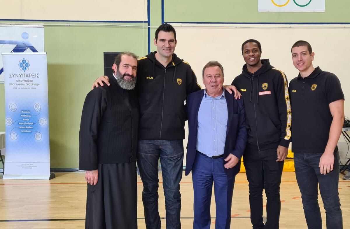 Αθλητές, προπονητές και στελέχη της ΑΕΚ BC με επικεφαλής τον Πρόεδρο, κ. Μάκη Αγγελόπουλο έδωσαν χαρά στα παιδιά της Δομής, χαρίζοντάς τους δώρα και αυτόγραφα, υποδεχόμενοι από τον Σεβασμιότατο Μητροπολίτη Ιλίου, Αχαρνών και Πετρουπόλεως, κ. Αθηναγόρα και το Γενικό Διευθυντή Πανοσιολογιότατο Αρχιμανδρίτη π. Παντελεήμων Παπασυνεφάκη.