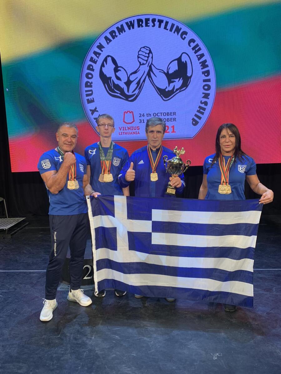 1η Θέση αριστερό – δεξί χέρι (2 χρυσά) στα 50 kg Λαζαρίδης Γιώργος