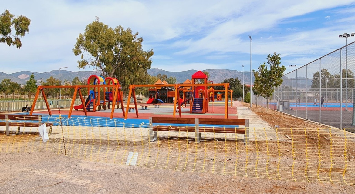 Ήδη έχουν ολοκληρωθεί δύο (2) γήπεδα ποδοσφαίρου στη βόρεια πλευρά του πάρκου, ένα εκ των οποίων μπορεί να χρησιμοποιηθεί και ως γήπεδο ράγκμπι, δύο (2) γήπεδα αντισφαίρισης και πετοσφαίρισης καθώς και δύο (2) γήπεδα καλαθοσφαίρισης. Παράλληλα, προς παράδοση βρίσκεται η μεγάλου μεγέθους και δυναμικότητας, παιδική χαρά, τηρώντας τα κριτήρια προσβασιμότητας και ασφάλειας, όπως περιγράφονται αναλυτικά στις τεχνικές περιγραφές. Σε εξέλιξη βρίσκονται επίσης, οι εργασίες καλλωπισμού του χώρου με την κατασκευή σιντριβανιών, χώρων σκίασης κ.α., ενώ τόσο περιμετρικά όσο και στους καθορισμένους χώρους έχει πραγματοποιηθεί η κατάλληλη φύτευση σύμφωνα με τα όσα προβλέπονται στο βιοκλιματικό σχεδιασμό του Πάρκου.