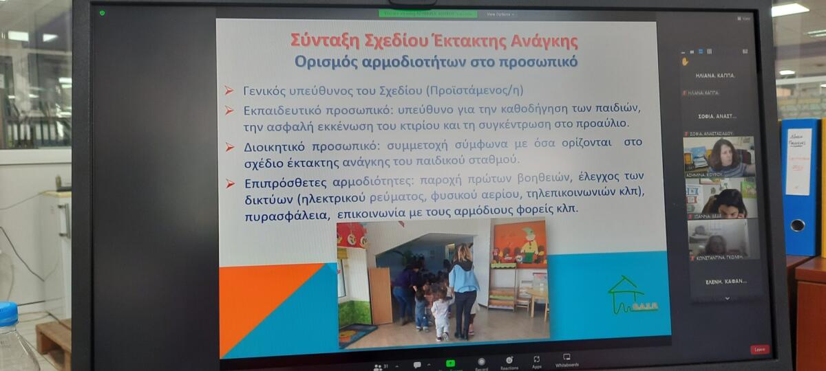 Αξίζει να σημειωθεί ότι το σεμινάριο ολοκλήρωσε μια σειρά ενεργειών που έχει υλοποιηθεί με στόχο την προσαρμογή του Μνημονίου Ενεργειών του ΟΑΣΠ για τη Διαχείριση του Σεισμικού Κινδύνου σε κάθε Δημοτικό Παιδικό Σταθμό. Συγκεκριμένα τοποθετήθηκαν αφίσες και κατόψεις για τον ενδεικνυόμενο τρόπο εξόδου από τα κτίρια, ελέγχθηκε η ασφάλεια των αντικειμένων στους σταθμούς από τον Τεχνικό Ασφαλείας του Δήμου και πραγματοποιήθηκαν ασκήσεις ετοιμότητας για τους Παιδαγωγούς, οι οποίοι με τη σειρά τους υποχρεούνται να εκπαιδεύσουν τα παιδιά.